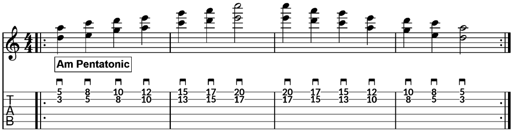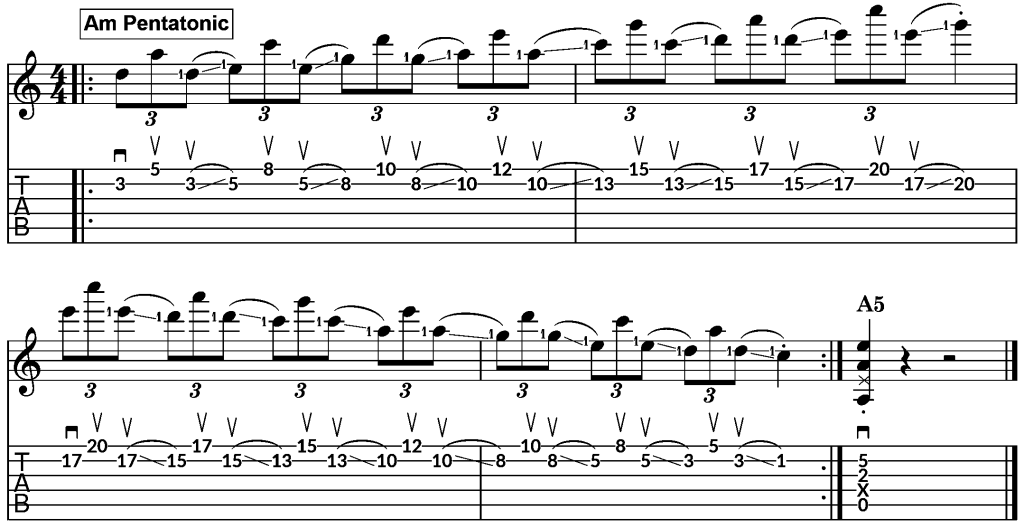 - Help you improve your ability to visualise the notes of the A minor pentatonic scale on the B-string and thin E-string.